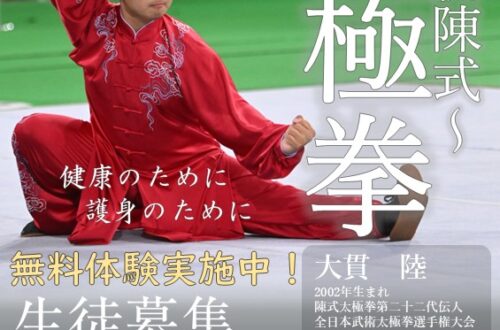 八王子市 陳式太極拳教室心と体を整える、伝統の中国武術「陳式太極拳」を、八王子市で学んでみませんか? 太極拳は、ゆったりとした動きと呼吸を組み合わせて行う、年齢や体力に関係なく取り組める健康法として世界中で親しまれていま…